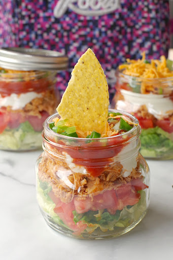 Chicken Taco Salad in mason jar | WW friendly - Food from foodmeanderings.com
